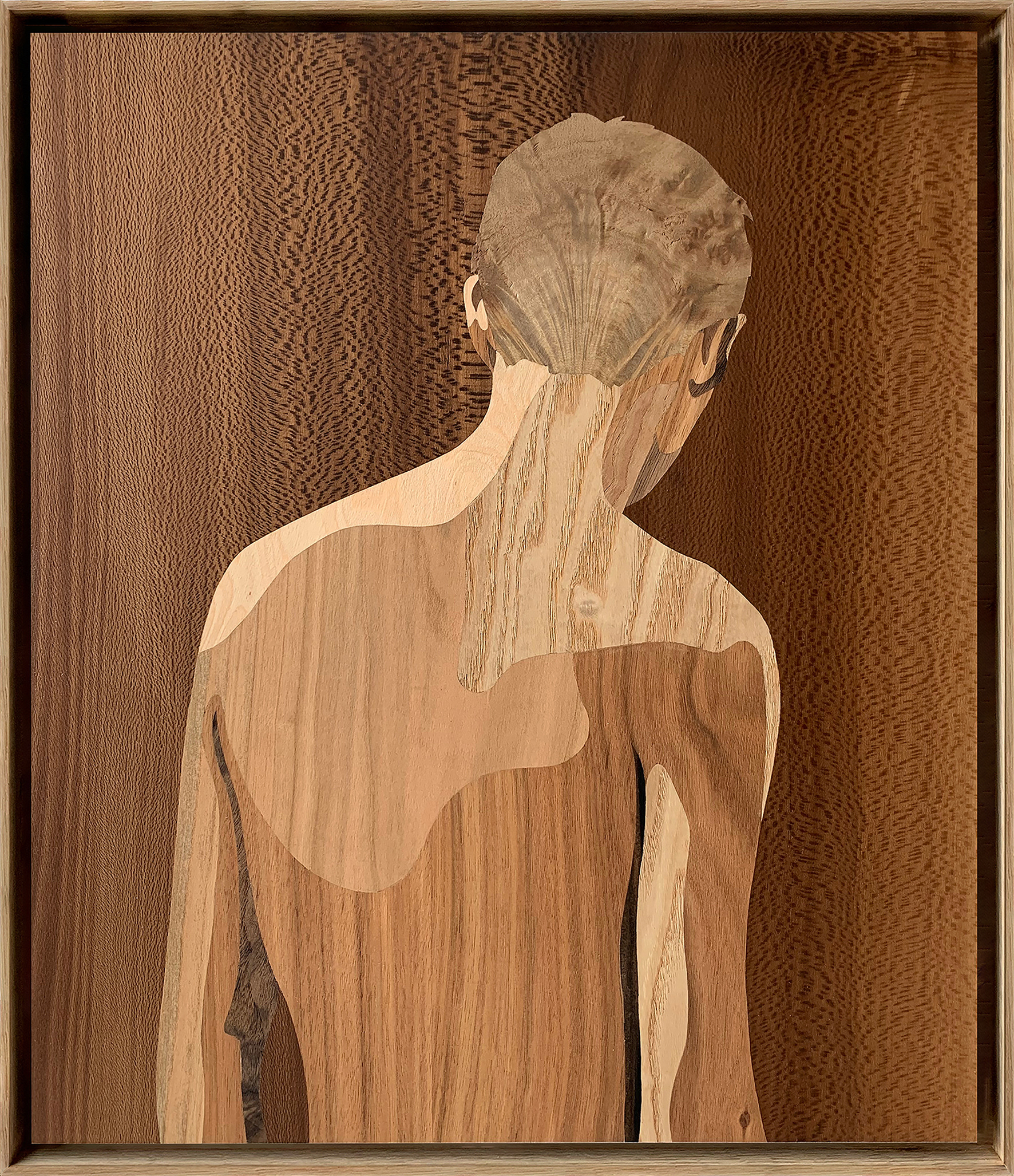 Wood Veneer Inlay in Custom Oak Frame